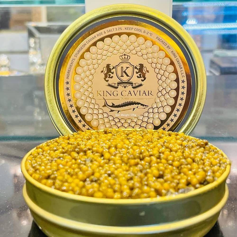 Golden Imperial Caviar is an epitome of grandeur with its shimmering golden pearls and its velvety, buttery taste. Hand-selected for its superior quality, this caviar exudes luxury and is ideal for making a grand statement at high-end events or as a lavish gift for someone special.